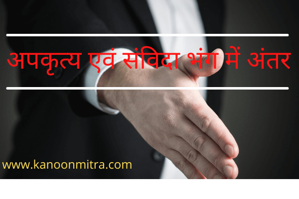 अपकृत्य एवं संविदा भंग में अंतर | Differences between Tort and Breach of contract in hindi